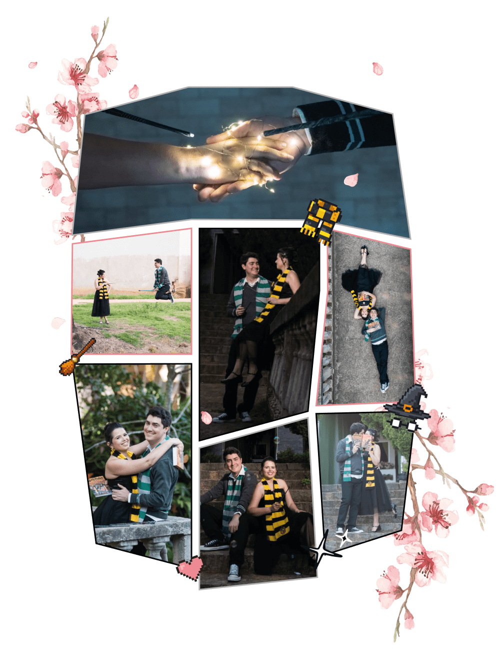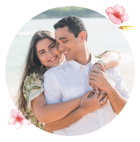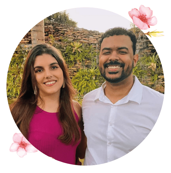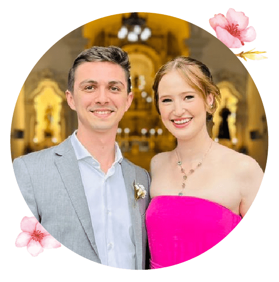 Mari e eu nos conhecemos na escola, e apesar do seu jeito um tanto quanto oposto ao meu - meigo, sereno e encantador, logo nos unimos e nos tornamos grandes amigas. Desde essa época, o Gio já estava ali há alguns anos: calmo, gente boa e focado. Casados há algum tempo, hoje são pais de dois pets fofíssimos - Gabo e Mag -, e formam um exemplo de casal unido e inabalável, capazes de enfrentar distâncias e recomeços como ninguém. Assim, queremos uma família linda como essa para abençoar o início da nossa!